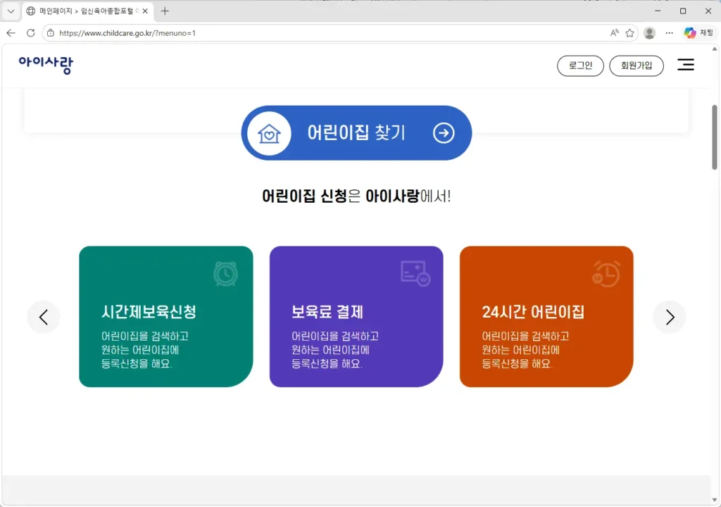 아이사랑보육포털 홈페이지 (https://www.childcare.go.kr)
